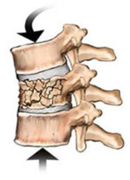 老年人出現(xiàn)的主要為壓縮性骨折,因?yàn)槔夏耆斯琴|(zhì)疏松,椎體周圍有韌帶包裹,因此收受到垂直外力時會出現(xiàn)壓縮。而中年人,青年人骨質(zhì)較脆,垂直壓力會導(dǎo)致椎體爆裂。